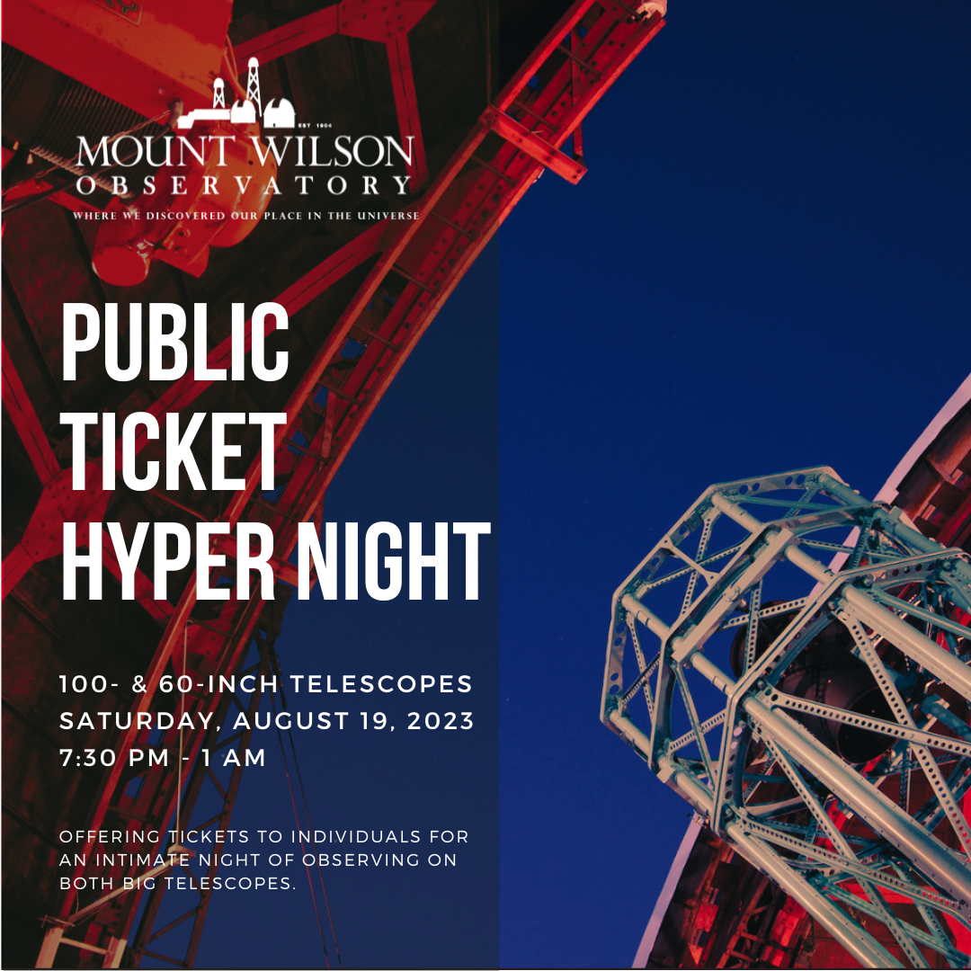 100- & 60-inch Telescope Hyper Public Ticket Night: Saturday, AUG 19, 2023 - CANCELED FOR WEATHER